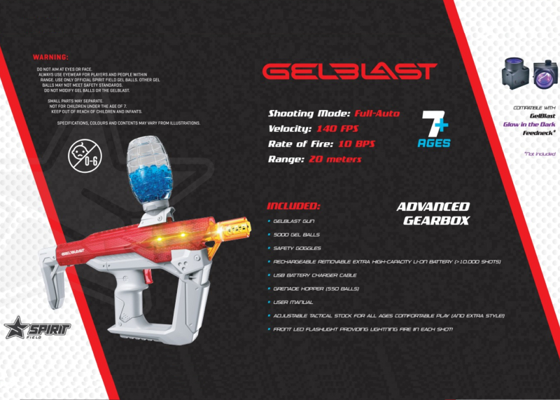 Vraiment l'impact d'une bille est faible, à travers un sweat-shirt, il doit même être négligeable, ce qui ne dispense cependant pas de porter au moins les lunettes de protections fournies avec le Gel Blaster Spirit Tactical, ou mieux encore: un vrai masque de Paintball protégeant tout le visage. Nous recommandons tous de même la présence d'un adulte pendant le jeu et la manipulation des répliques Gel Blaster Spirit , histoire qu'un petit un peu étourdi ne regarde pas dans le canon voir s'il reste des billes...