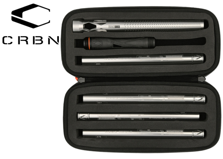 Le kit IC NANO Barrel combine notre célèbre Back ultra-léger en carbone injecté et un embout de canon en aluminium micro-percé, avec quatre inserts PWR de diamètres essentiels : .679 / .683 / .687 / .689, tous anodisés assortis et présentés dans un nouvel étui zippé léger doublé de mousse.